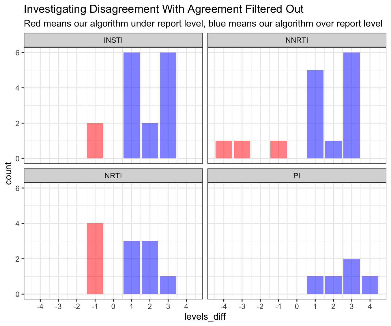 Not too shabby! Now our NNRTI and PI look exactly the same! But our INSTI is not great! Mainly because there are a quite a few deletions that our alignment and their alignments don’t agree.