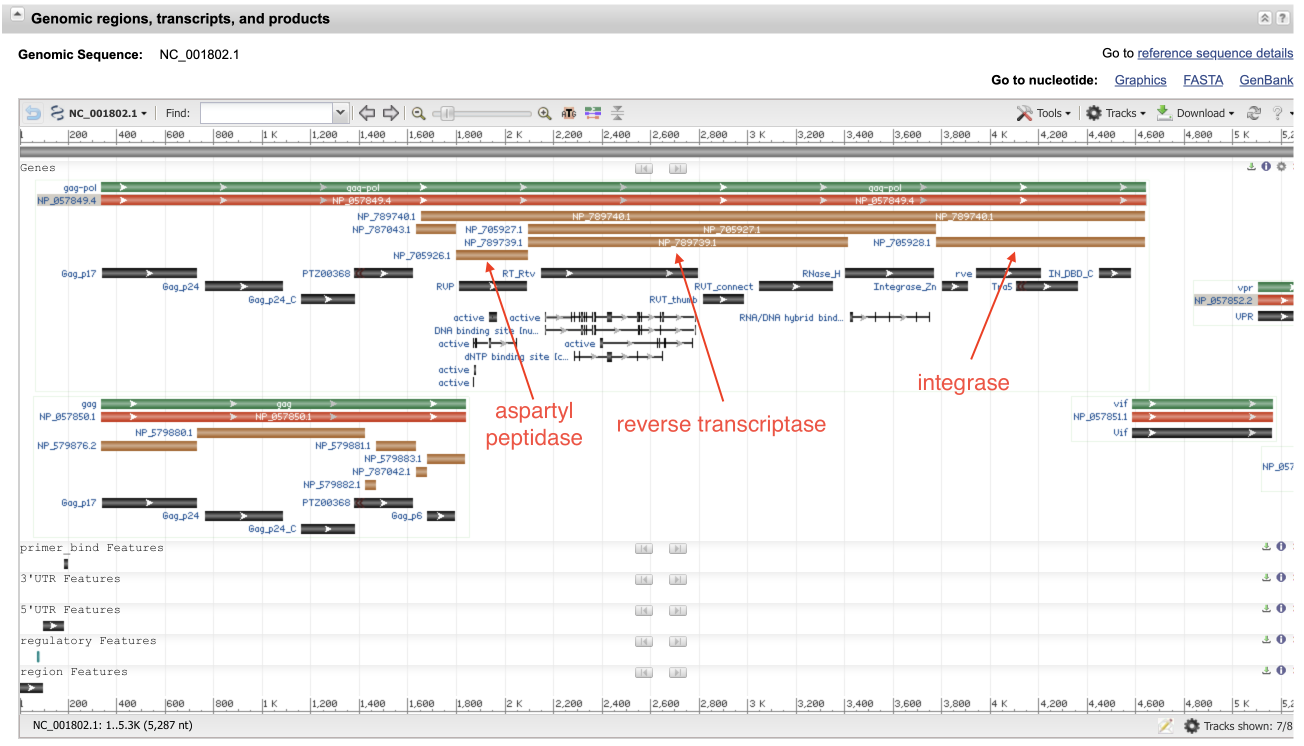 With the above we’re basically setting up a databse for the reference pol gene of PR, RT, and IN. We will then find a genome of interest and use blast to identify where these genes are located on the sample sequence like so.