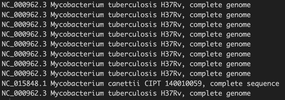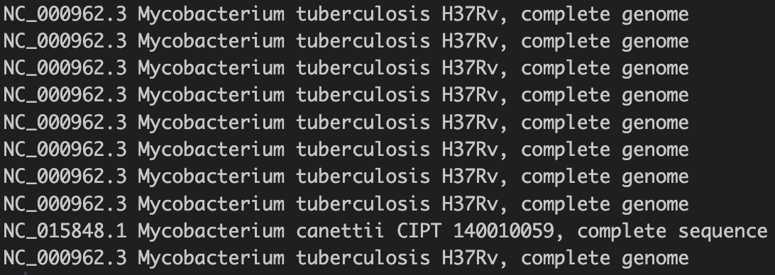 We’re looking at arranged descending bitscore and top 10 results. Nine of 10 are Mtb, which is great! Wait a minute, there is something called Mycobacterium canettii. What is that !? Wow, at least that’s an Mtb complex! Let’s dive in a bit.