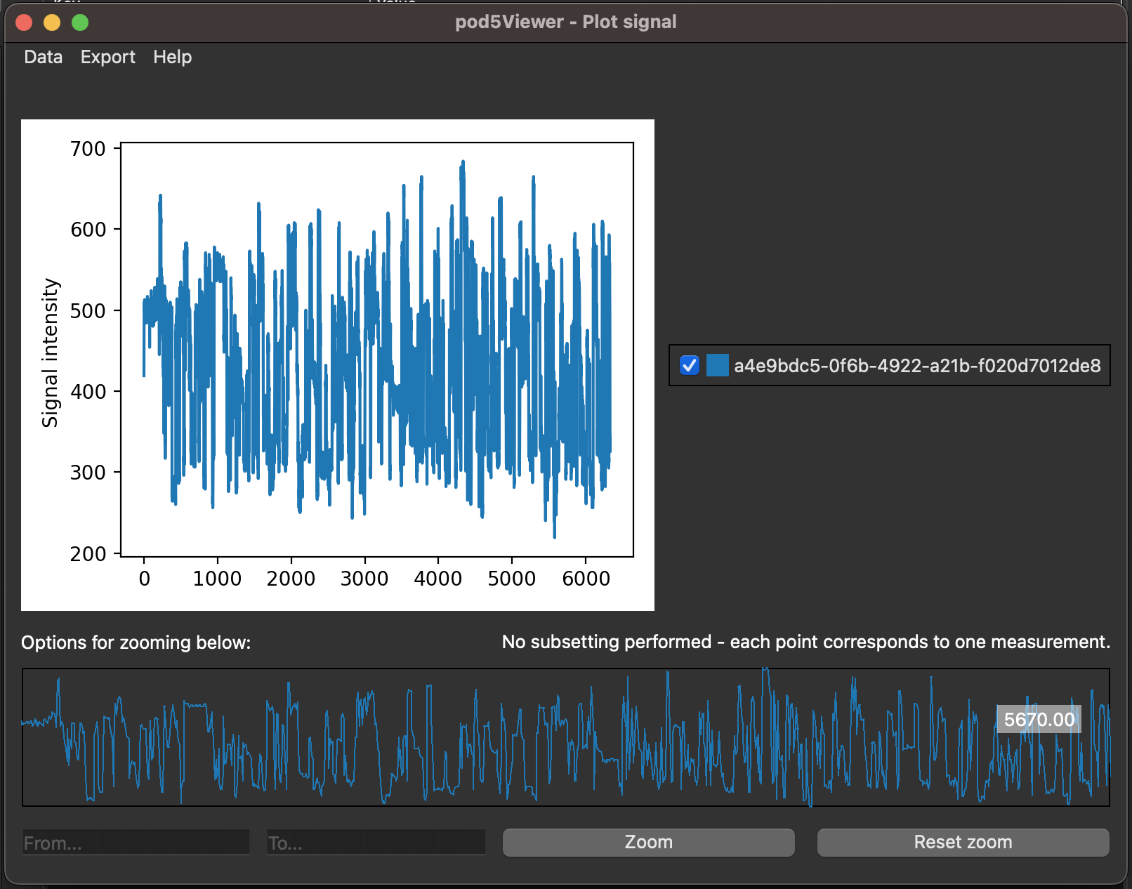 basically records those signals. Each signal reflects multiple nucleotide. There is a python package where we can view the pod5 file called pod5Viewer