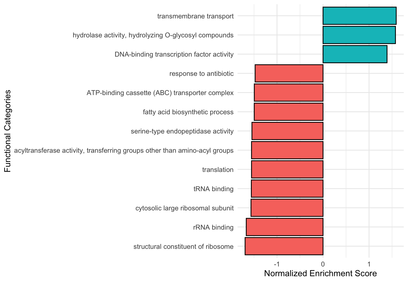 labs(x = "Normalized Enrichment Score", y = "Functional Categories") +